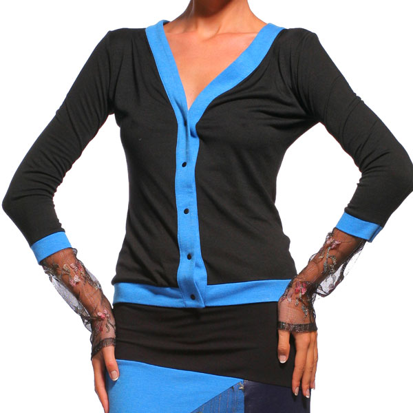 Рукава 3/4 с манжетами, V-образный вырез горловины, плавно переходящий в планку с кнопками. Мягкий трикотаж очень приятен к телу.
