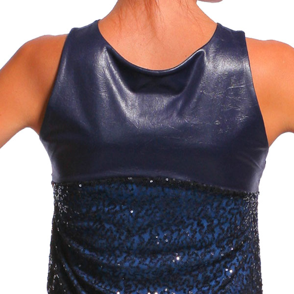 Оригинальная кокетка открывает плечи. Она выполнена из ткани с эффектом кожи, которая вносит определенный шик в это платье.