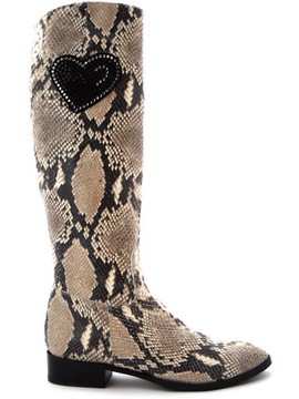 Низкий каблук и высокая колодка делают эти сапоги очень удобными и практичными, а выложенное из стразов сердечко придает гламурности и красоты. Очень стильные и интересные, эти сапоги будут фаворитами сезона.