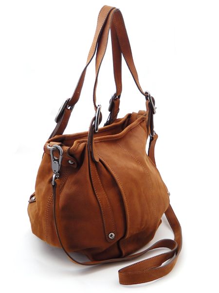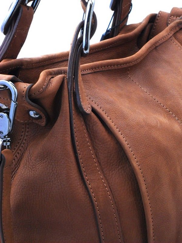Сумка выполнена из высококачественной рыжевато-коричневой кожи. Низ сумки имеет округлую форму, эта линия делает внешний вид сумки очень эффектным. В комплекте есть верхняя ручка, чтобы носить сумку через плечо.
