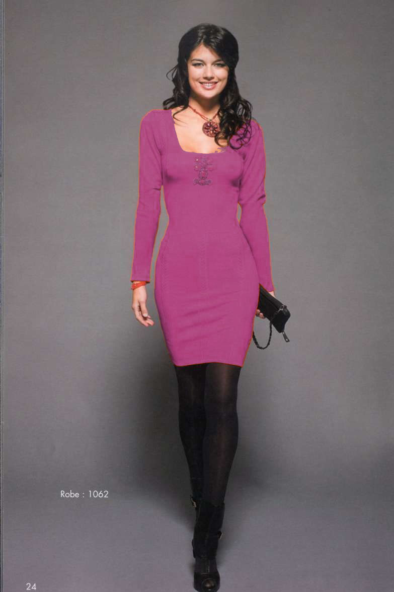 Красивое трикотажное платье с оригинальным украшением из камней. Платье прилегающего силуэта, вырез V-образный. Украшение из камней в тон, в виде четырех-лепесткового цветка.