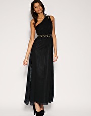Роскошное черное вечернее платье макси на одно плечо, относится к коллекции прошлого сезона. Купить новые