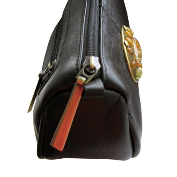 Невероятна красивая косметичка! Выполнена вручную из натуральной кожи. Косметичка застегивается на молнию, с внешней стороны есть кармашек. Это поистине шикарная вещь! Украшение под янтарь придает изделию дополнительный шарм. Косметичка идеально подойдет для хранения декоративной косметики, а при желании ее можно даже использовать как клатч. Приобретая косметичку с украшением под янтарь, вы становитесь счастливой обладательницей эксклюзивной модели.