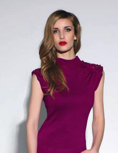 Его нежный французский трикотаж великолепно облегает фигуру, а оригинально выполненная отделка в виде пагонов из страз добавляет ему элемент роскоши и шика.
