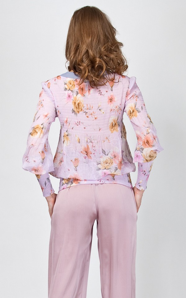 Актуальная тенденция наступающего сезона – цветочные принты. Вот почему в этой блузке от творческого дуэта «Две сорванные башни» Вы будете на гребне модной волны! Изделие выполнено из легкого, удобного в носке материала, создающего образ небесной богини. Имитация запаха, воздушные рукава, собранные в высокий манжет, декоративный бант – это не просто вещь, это шедевр! Гармоничное соединение цветного узора с обтачкой василькового цвета не сможет оставить Вас равнодушной. Обязательно примерьте эту милую вещицу, и Вы не захотите с ней больше расстаться!