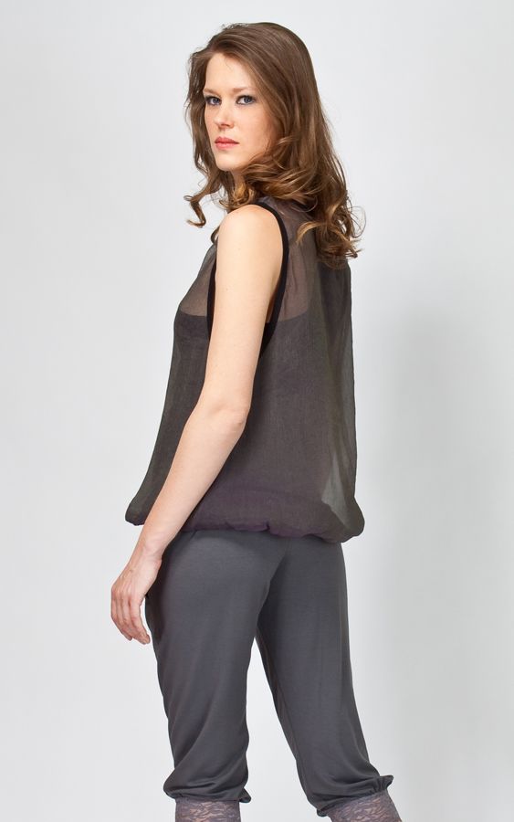 Модный сезон открыт! Для создания светлого легкого образа используйте полупрозрачные ткани. Пепельно-серая блузка из новой коллекции Sunsity подойдет как нельзя кстати! Изделие многослойное. Нижний слой представляет собой маечку на одно плечо. Верхняя часть из полупрозрачного шифона, внизу присборена. Обтачка черного цвета добавляет контраста, благодаря чему изделие выглядит многообразнее и богаче.