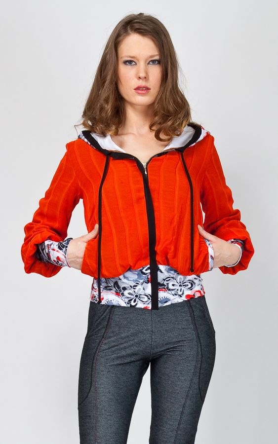 Оранжевый снова в моде! Не пропустите шифоновую куртку на подкладке из трикотажа от творческого дуэта «Две сорванные башни». Яркие принты по низу изделия, на высоких манжетах рукавов и капюшоне – просто хит сезона! Можно носить с джинсами или короткой юбкой. Легко надевать благодаря молнии. Курточка невероятно удобна, так как выполнена удачным свободным кроем и снабжена карманами. Актуальная яркая вещь для счастливых людей. Поселите в своем гардеробе солнце!