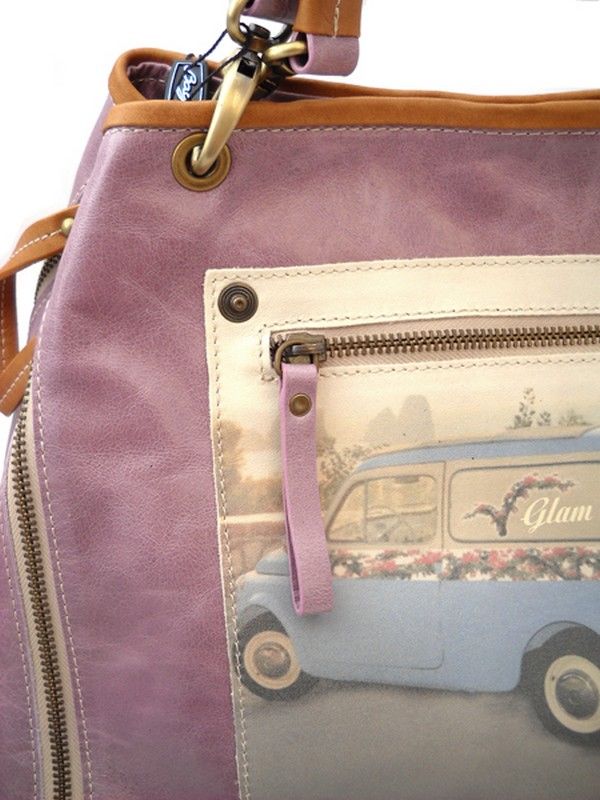 Элегантная молодежная сумка светло-розового цвета (античный розовый) с застежкой на магнитную кнопку. Сумка украшена аппликацией с принтом в ретро-стиле. По бокам декоративные молнии. Внутри сумка имеет одно отделение, один кармашек на молнии и два для мелочей. Подкладка вискоза бежевого цвета.