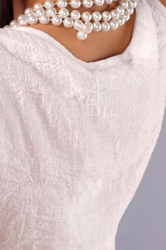 Чистотой и свежестью веет от этой летней модели. Многослойность за счёт воздушного хлопка и подкладки из тонкой сеточки, волан по низу, кружевной узор с мелкими перламутровыми пуговками - просто прелесть!