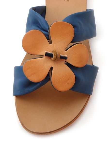 Очаровательные сандалии насыщенного синего цвета. Плоская подошва и небольшой каблучок позволят вам не чувствовать усталость целый день.