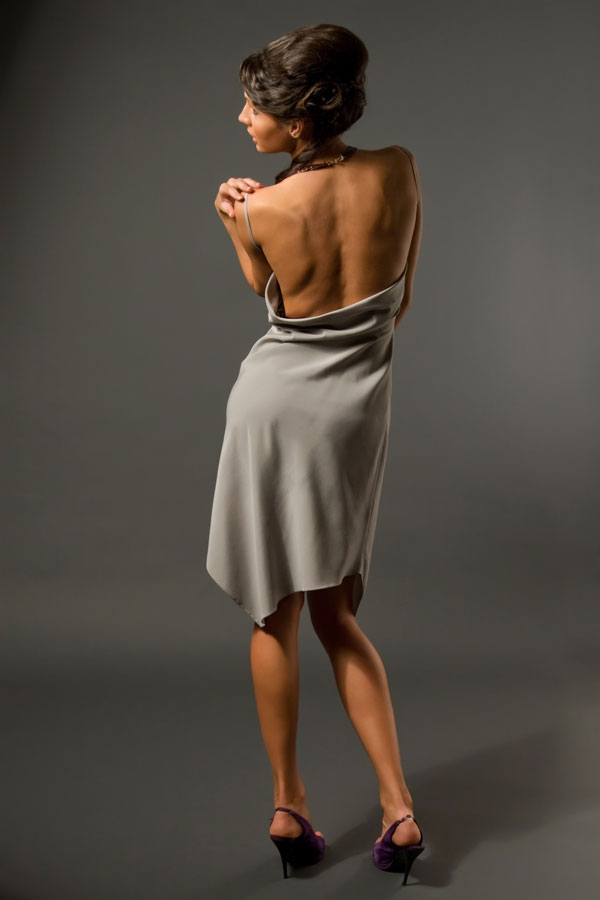Приталенный силуэт, асимметричный низ, открытая спина, тонкие бретели- все эти детали собраны вместе, чтобы создать Ваш неповторимый образ, в котором сплетаются женственность и сексуальность, спокойствие и утонченность, благородство и стиль.