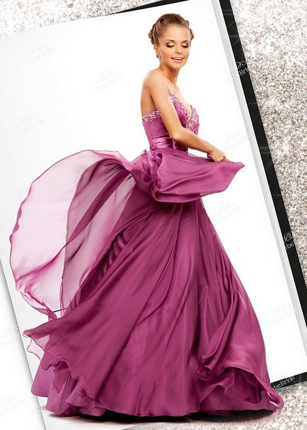 Роскошное, искрометное, экспрессивное вечернее платье с изысканной вышивкой на лифе бисером и искрящимися стразами… эта модель никого не оставит равнодушными, а Ваш выход станет невероятно эффектным. Модель идеально подходит, как для светского официального раута, так и для выпускного бала, или торжественного события. Платье идеально даже для свадебной церемонии, особенно для смелых и темпераментных невест. Глубокий фиолетовый цвет, струящиеся ткани – атлас и шифон, в этой модели все насыщено изяществом и грациозностью.