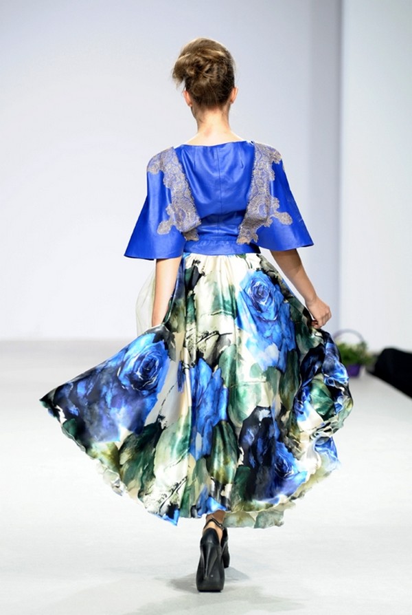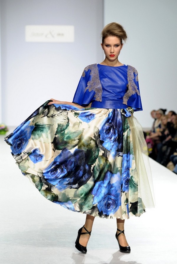 Прекрасная шелковая юбка в крупных сине-белых цветах подарит вам ощущение настоящего парения, настолько она легкая и воздушная.