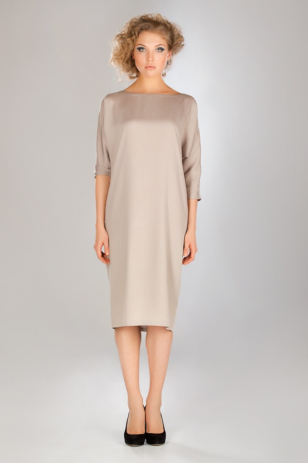 Каждая деталь этой модели: вырез горловины в форме лодочки, длина рукава ¾, длина платья миди, покрой «летучая мышь» - отличается продуманностью, уместностью и актуальностью.