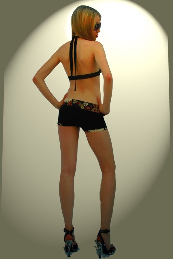 Модель выполнена из вискозы с добавлением эластана, что позволяет ей безупречно сидеть по вашей фигуре. Черный цвет купальника разбавлен интересными рисунком на лифе и шортиках в виде крупных и мелких цветов.