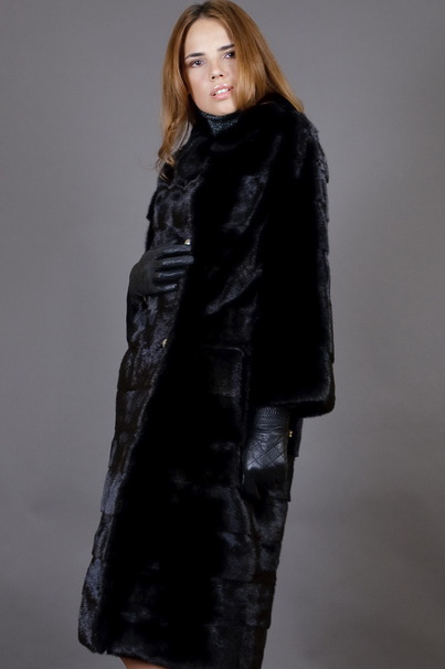 Классическая норковая шуба, раскошенная модель Prado, выполнена из меха горизонтальной раскладки. Силуэт слегка заужен к низу, плечо приспущено. Отделка матовыми серебристыми пуговицами придает модели оригинальности. Ассиметричный запах застегивается на крючки. Эту модель можно носить без пояса или дополнить ее подходящим широким ремнем.