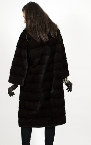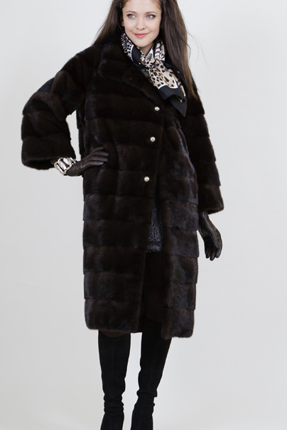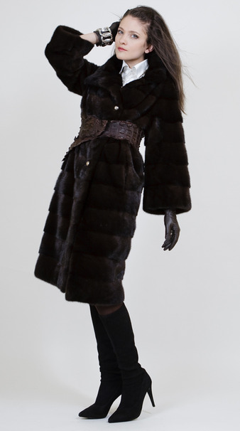 Шуба из норки коричневой группы, цвета Махагон, одного из самых темных и дорогих. Силуэт шубы – Кимоно, один из самых модных и актуальных в этом сезоне. Выполнена модель в поперечной раскладке меха. Высокое качество шубы отвечает всем европейским стандартам. А отделка из серебристых пуговиц-обманок придает изысканности и шика. Так же в этой шубе присутствует остромодное сочетание слегка укороченного рукава и воротника стойки. Эта шуба для тех, кто хотел бы подчеркнуть свою индивидуальность и отличный вкус.