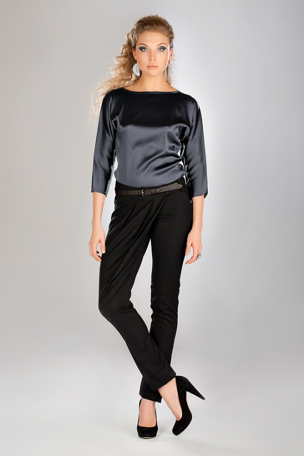 Предлагаем Вам обратить внимание на оригинальные брюки с запахом и косыми складками из шерсти высочайшего качества.