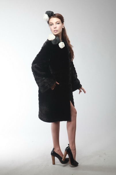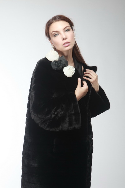 Уникальная люксовая модель, выпущенная ограниченным тиражом. Шуба выполнена из меха норки blackglama, техника пошива - раскладка меха в 1/4 шкурки в роспуск - считается самой дорогой и сложной. Такая техника кроя шкурок подчеркивает красоту меха и в этом сезоне стала хитом мировой меховой моды. В этой модели используется дизайнерский вариант подкладки с отделкой французским кружевом и черными стразами Сваровски. Длина модели 100 см. Украшения в виде роз можно снимать.