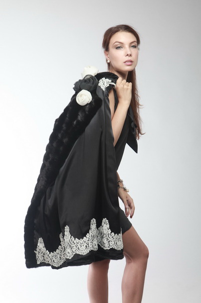 Уникальная люксовая модель, выпущенная ограниченным тиражом. Шуба выполнена из меха норки blackglama, техника пошива - раскладка меха в 1/4 шкурки в роспуск - считается самой дорогой и сложной. Такая техника кроя шкурок подчеркивает красоту меха и в этом сезоне стала хитом мировой меховой моды. В этой модели используется дизайнерский вариант подкладки с отделкой французским кружевом и черными стразами Сваровски. Длина модели 80 см. Украшения в виде роз можно снимать.