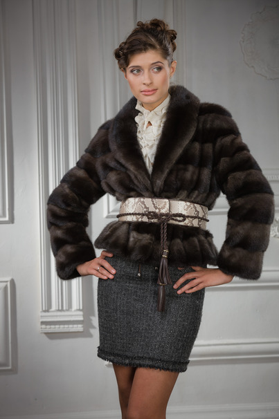 В модели Carola использована поперечная раскладка норки cool grey. Такая шубка очень практична, но при этом она выглядит очень эффектно за счет прямого кроя. Дополнив эту шубу широким кожаным поясом шуба становится еще более эффектной. Длина этой модели 55 см.