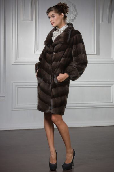 Силуэт мехового пальто из норки Java в диагональной раскладке слегка заужен книзу с припущенным плечом выглядит очень роскошно. В этой модели использованы ассиметричная стойка-лодочка и ассиметричный запАх с застежкой на крючки. Эта модель прекрасно смотрится с широким кожаным поясом.(его можно приобрести ополнительно). В такой шубке Вы будете по достоинству оценены в самых искушенных кругах и не заметить Вас будет просто не возможно! К тому же подобные модели не только эффектны и актуальны, но и очень комфортны и великолепно скрывают многие погрешности фигуры. Длина шубы 95 см.