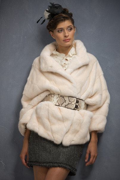 Эффектный и практичный полушубок из норки Pearl. Интересный и сложный крой модели. При пошиве использована поперечная раскладка шкур. Слегка укороченный рукав 7/8. Подкладка - 100% шелк. Очень теплый и при этом очень легкий, струящийся и пластичный. Шубка эффектно смотрится как без пояса, так и с ремнем из кожи питона или угря. Длина полушубка 63 см.
