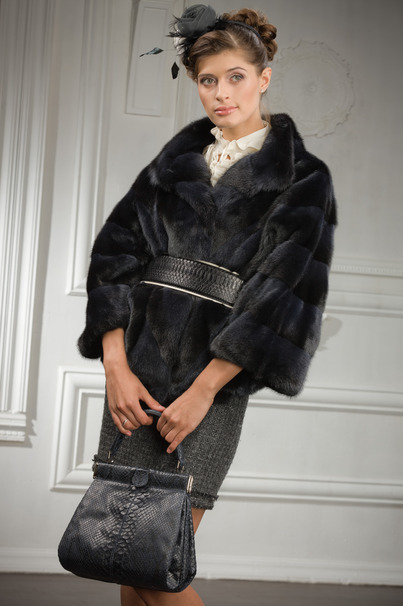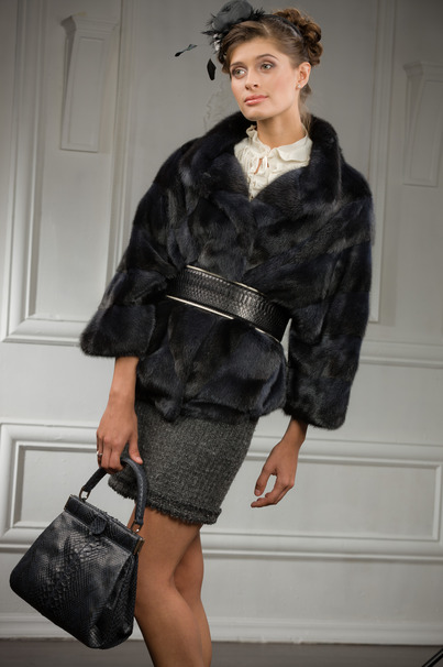 Эффектный и практичный полушубок из норки Blue Consul. Интересный и сложный крой модели. При пошиве использована поперечная раскладка шкур. Слегка укороченный рукав 7/8. Подкладка - 100% шелк. Очень теплый и при этом очень легкий, струящийся и пластичный. Шубка эффектно смотрится как без пояса, так и с ремнем из кожи питона или угря. Длина полушубка 63см