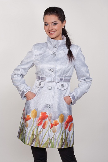 Увидев вас в этом плаще, украшенном великолепными тюльпанами понизу, любой мужчина сочтет за честь уберечь нежный цветок от дождя и непогоды.