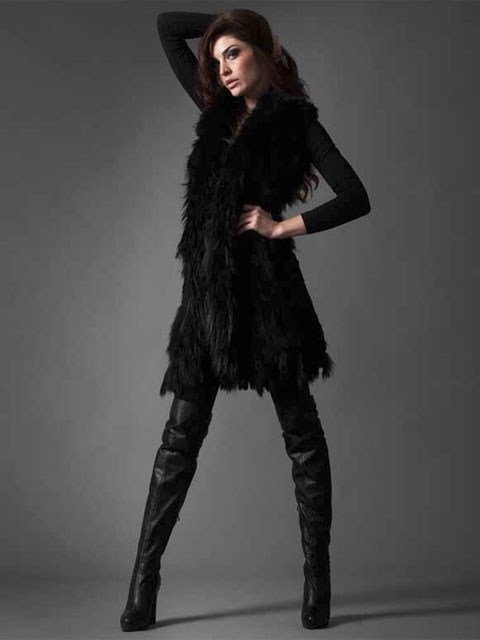 Кстати, необычное сочетание меха разной длины и фактуры вполне может сделать этот длинный жилет центральной деталью вашего наряда, не требующей к тому же наличия особых аксессуаров – он сам по себе настоящая жемчужина вашего гардероба.