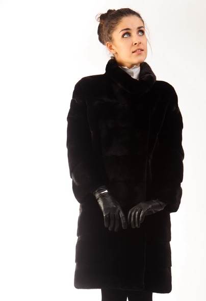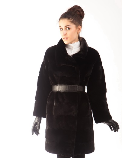 Потрясающий фасон - слегка зауженный книзу силуэт, приспущенное плечо. Эта модель с длинным рукавом. Высокая асимметричная стойка-лодочка. Асимметричный запАх с застежкой на крючки. Шубка без пояса, но изумительно смотрится с широким кожаным ремнем (его можно приобрести дополнительно). К тому же подобные модели не только эффектны и актуальны, но и очень комфортны и великолепно скрывают многие погрешности фигуры. Длина шубы 101см