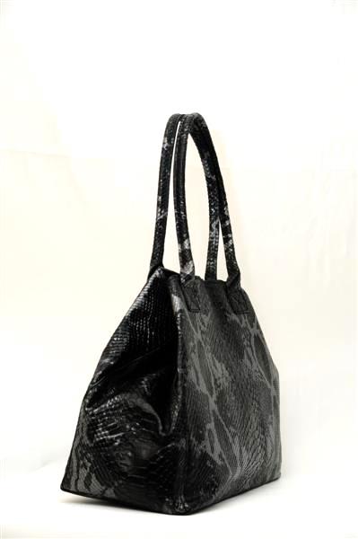 Необычная дизайнерская сумка от итальянских мастеров выполнена в виде змеиной кожи. Сумка имеет форму округлой трапеции, бока которой вогнуты внутрь. Прямые и тоненькие ручки позволяют носить её не только в руке, но и закинуть на плечо или же нести на одной руке – возле локтя. С ней вы будете всегда стильной.