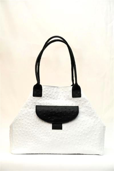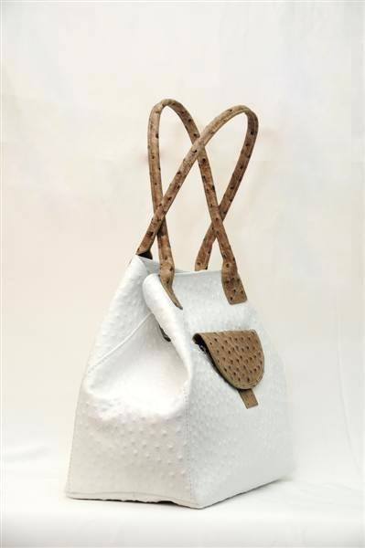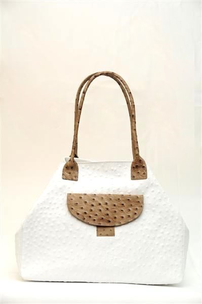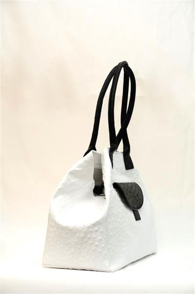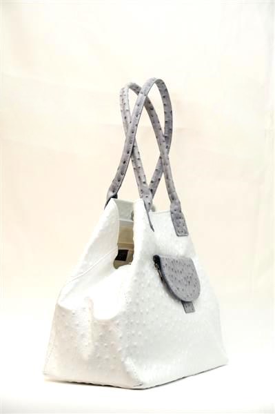 Необычная дизайнерская сумка от итальянских мастеров выполнена в виде страусиной кожи. Сумка имеет форму округлой трапеции, бока которой вогнуты внутрь. Прямые и тоненькие ручки позволяют носить её не только в руке, но и закинуть на плечо или же нести на одной руке – возле локтя. С ней вы будете всегда стильной.