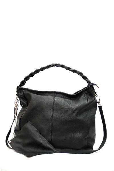 Сумка застёгивается на качественную молнию. У основания ручки на тонкой цепочке висит маленький кошелёк, куда удобно будет положить ключи, деньги или телефон. Ручка выполнена в виде плетёной косы, что придаёт сумке изысканность и уникальность.
