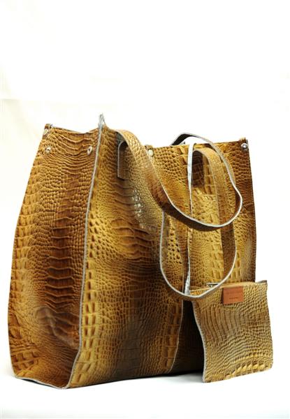 Стильная кожаная сумка, которая имеет внешний вид – кожу рептилии, привлечет внимание всех модниц. Помимо молнии, на которую застёгивается сумка, посередине имеется одна металлическая заклёпка. Благодаря ней, сумка приобретает совсем другой вид. С боку висит вместительный кошелёк, в который можно положить телефон или ключи от дома.