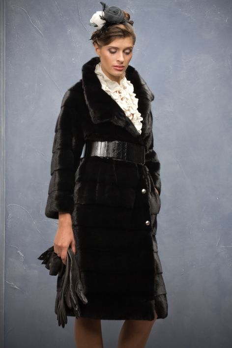 Шуба создана из драгоценной норки BlackNafa, которая отличается своим естественным черным цветов без окраски и тонирования.