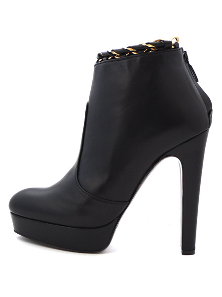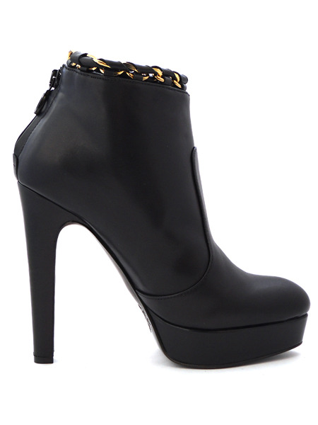 Ботильоны отделаны фурнитурой-цепочкой под золото, которая смотрится как браслет на ноге обутой в ботильоне и это делает их еще ярче, придавая шарма и сексуальности.