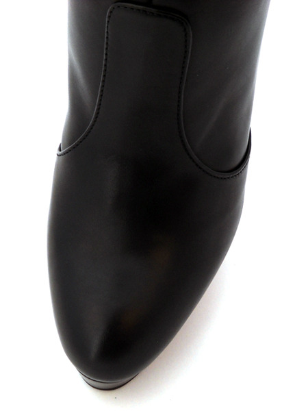 Ботильоны выполнены из натуральной кожи с тиснением логотипа черного цвета. Каблук также обтянут кожей, а высота каблука составляет 13 см.