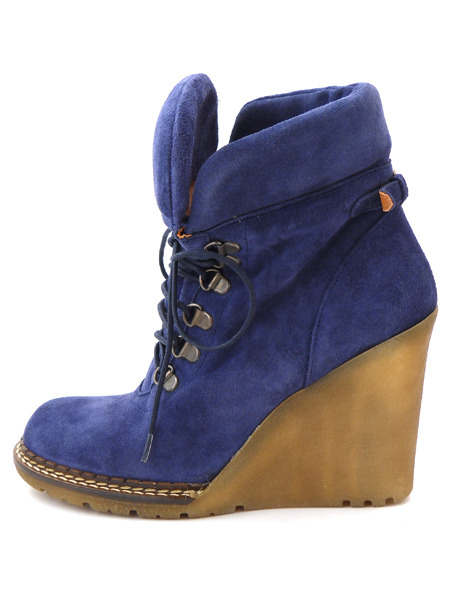 Эти чудные осенние ботильоны на танкетке из синей замши обязательно Вам понравятся за счет своей стильности и комфортности и конечно покорят своей яркостью!