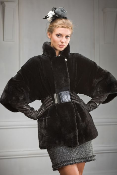 Модель, выполненная из ценнейших мехов: шелковой щипано-полированной норки и BlackGlama - лучшей черной норки в мире, потрясает своей необыкновенностью с первой же секунды. Изысканные, четкие линии дизайна а-ля кимоно отвечают самым последним тенденциям моды и подчеркивают эксклюзивность этой шубы.