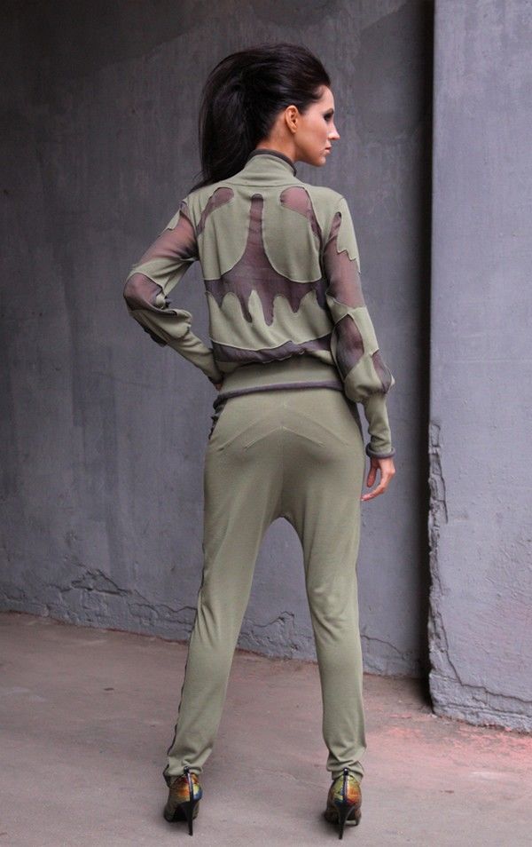 Стильные брюки актуального оливкового цвета из новой коллекции модного дома "Две Сорванные Башни" не нуждаются в дополнительном описании. Узкий покрой, преувеличенные детали, отделка по бокам из шифона – все вместе это создает образ активной и смелой женщины, знающей себе цену и умеющей отстаивать свои личные позиции.