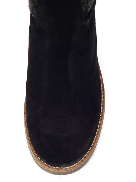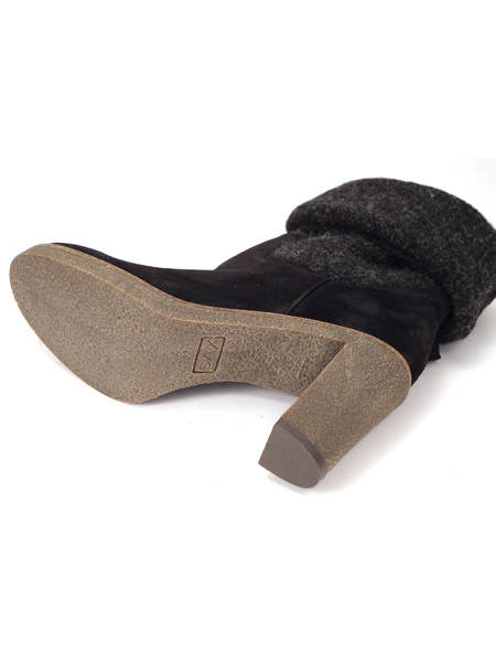 Сапоги выполнены из натуральной замши черного цвета, а голенище выполнено из трикотажа цвета антрацит. Ваши ноги не замерзнут т.к. подкладка и стелька выполнены из натурального меха.