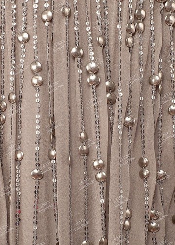 Необычное, лёгкое коктейльное платье, выполненное из тонкого сатина, украшено многочисленными металлическими пластинами и пайетками. Платье, словно струится по фигуре.