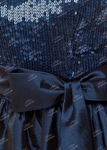 Короткое вечернее платье с выразительным открытым декольте и подчеркивающей линию бедер юбкой-тюльпаном, декорированной сбоку изысканным воланом и пышным бантом. Вышивка лифа искрящимися паетками придает особый шарм модели, который также выражает и ее невероятно глубокий синий цвет. Изящная тафта, из которой выполнено платье, мягко облегает фигуру, подчеркивая ее грацию и стройный силуэт. Эта модель, несомненно, подчеркнет настроение любого торжественного события и праздника и станет удивительно удачным выбором, как для шумного торжества, подчеркнет восхитительность момента романтической встречи.
