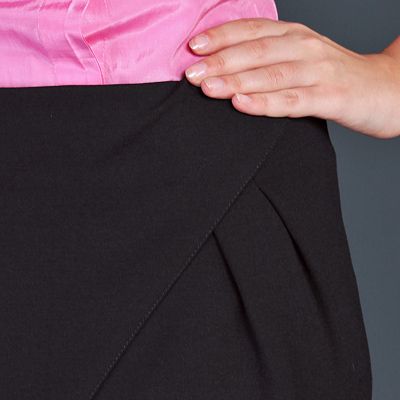 Необычный покрой этой юбки из новой коллекции Profito Avantage сразу привлекает внимание. Эффект запаха удачно маскирует возможные проблемные зоны и придает силуэту стройность, а легкие диагональные складки обеспечивают образу мягкость и женственность.