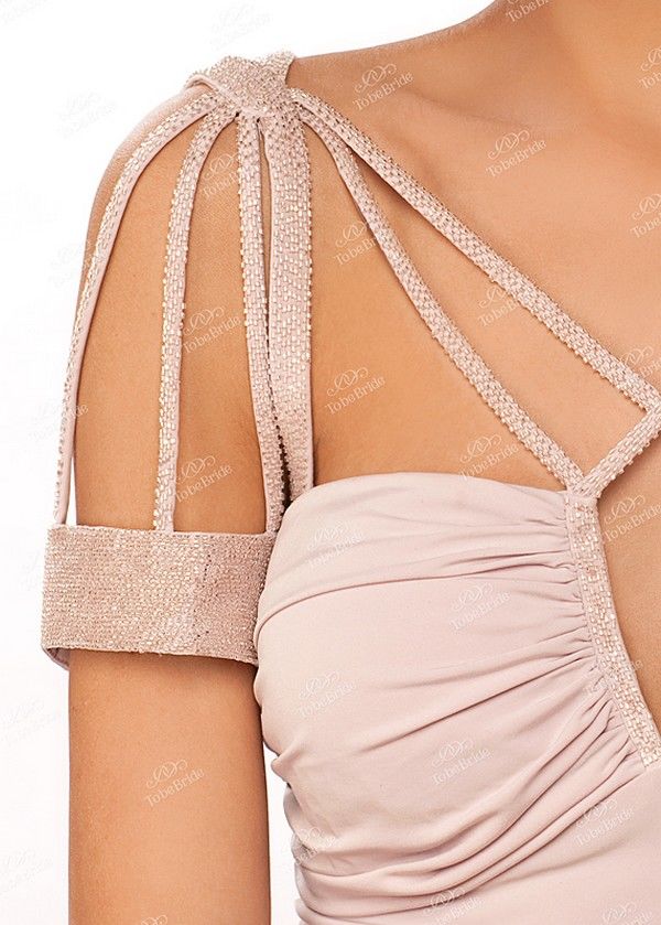 Глубокий вырез декольте скрадывается несколькими плотными тонкими нитями, которые скрещиваются на груди и плавно переходят к плечам.
