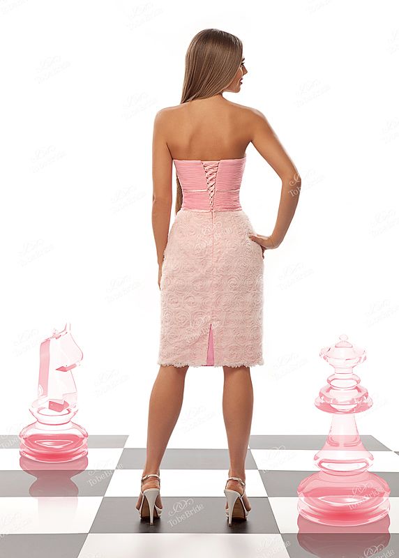 Милое платье, созданное из нежной розовой ткани, украсит собой любую девушку. Плотный корсет, выполненный их нескольких слоёв тонкой ткани, украшен двумя атласными полосочками. Сзади на спинке имеется небольшая шнуровка, придающая платью пикантности и элегантности.