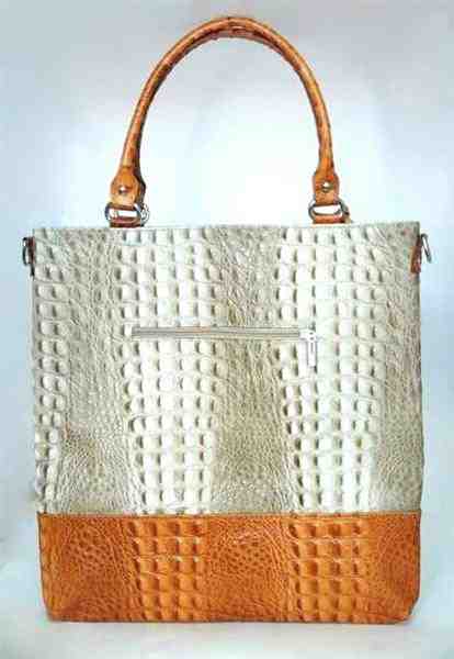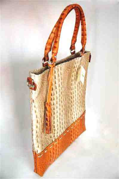 Сумка выполнена из натуральной кожи под каймана, сумка сочетает в себе 2 оттенка, которые между собой отлично гармонируют: бежевый и рыжий цвета.