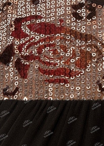 Линии талии завышена, поэтому вы визуально будете казаться стройной и грациозной. Благодаря плотной и широкой резинке, которая проходит под линией груди, платье смотрится необычно и красиво. Слой прозрачного чёрного фатина на платье придаёт этой модели изюминку.