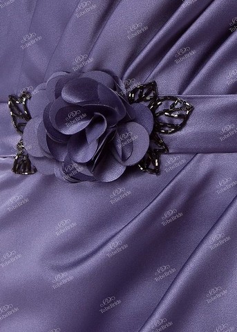 Вечернее платье с необыкновенно эффектной драпировкой верха, необычный дизайн которого задает элегантный и изысканный тон модели. Облегающий фасон придает особую грацию фигуре, а атлас, из которого выполнено платье, мягко струясь, подчеркивает изящество всего силуэта. Классическое «маленькое платье» нежного фиолетового цвета обладает яркостью и колоритом и придаст особое настроение и шарм Вашему выходу. Аккуратный аксессуар в виде цветка придает эффект романтики этому образу, который, несомненно, не останется незамеченным и подчеркнет тонкость Вашего стиля.